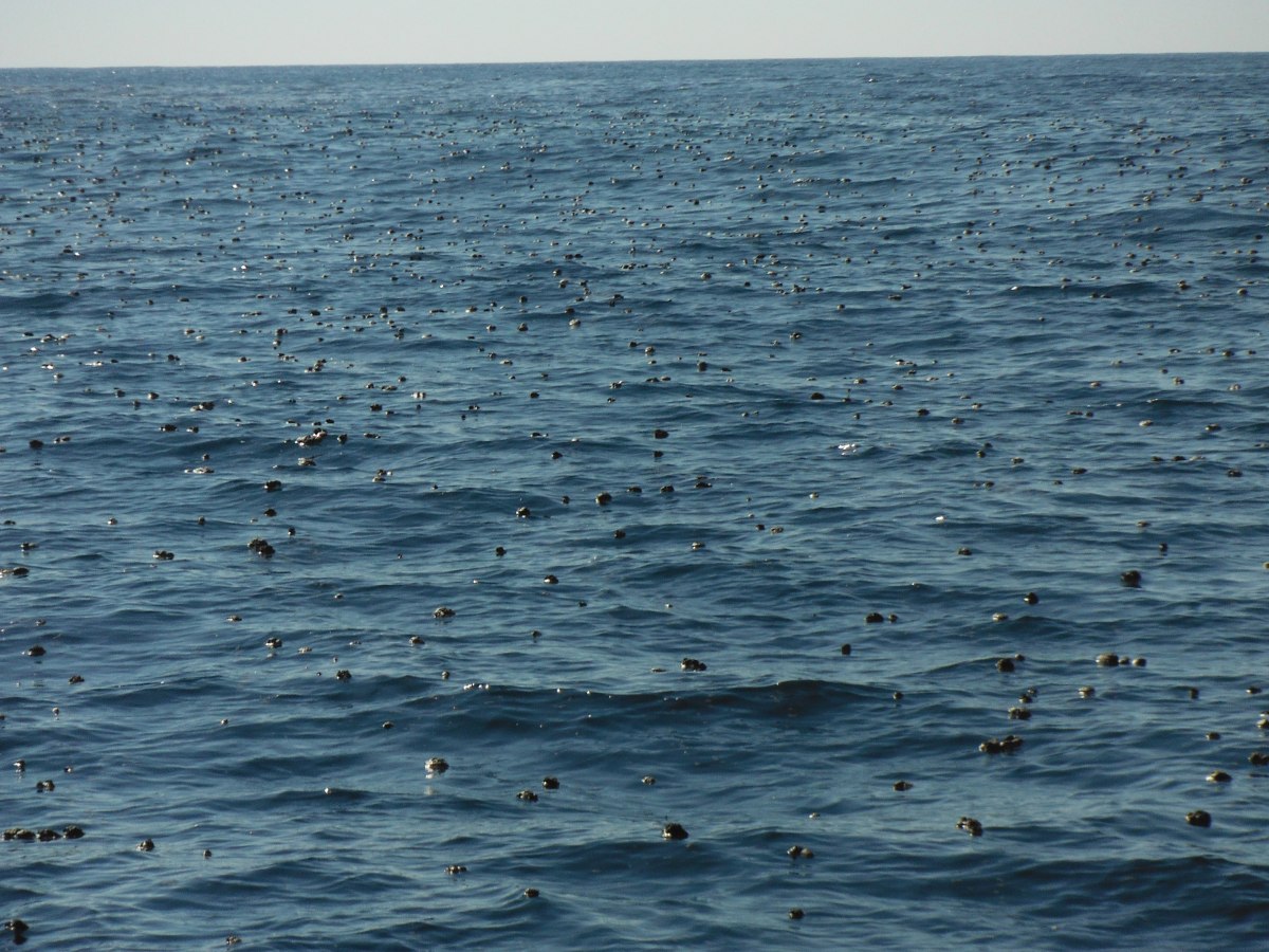Floating balls of ….? Published January 19, 2013 at 4320 × 3240 Floating balls of …? We sailed through three of these patches near Lazaro Cardenas. A good guess is the freighters emptying their holding tanks.