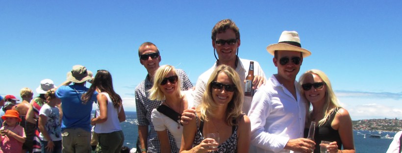 Our holiday festivities didn’t end there… we are in Sydney after all! The start of the Sydney to Hobart Race is always scheduled for December 26th, Boxing Day, regardless of weather (!). Here’s where (finally) an Australian tradition made its way into our schedule. New friends Dan and Maxine invited us to watch the race and enjoy a Boxing Day seafood lunch at their home. Wow – we had a fantastic view from a park on Middle Head and the celebrations continued….