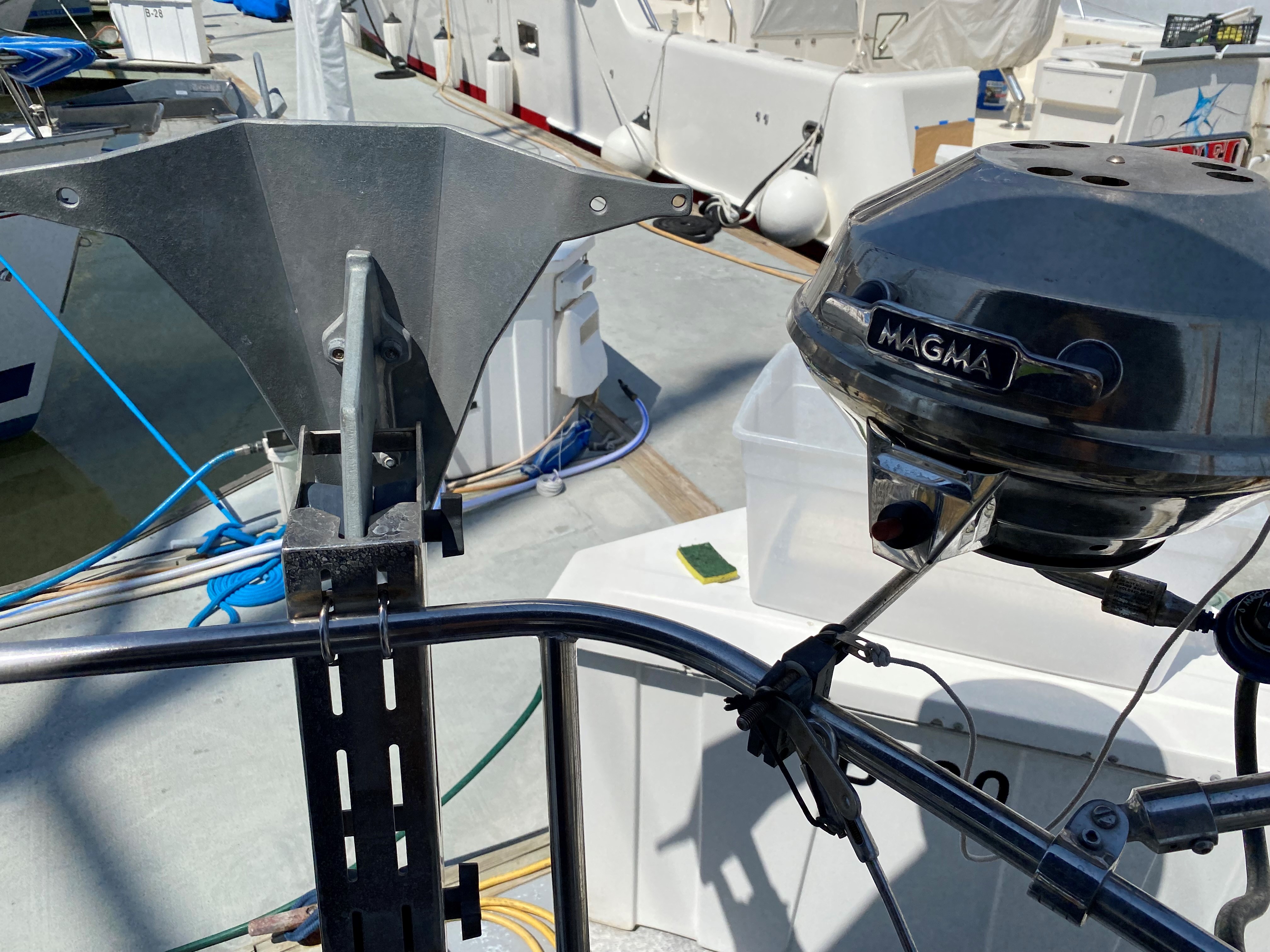 - 45lb Delta as backup, 25lb Mantus stern anchor on pushpit bracket