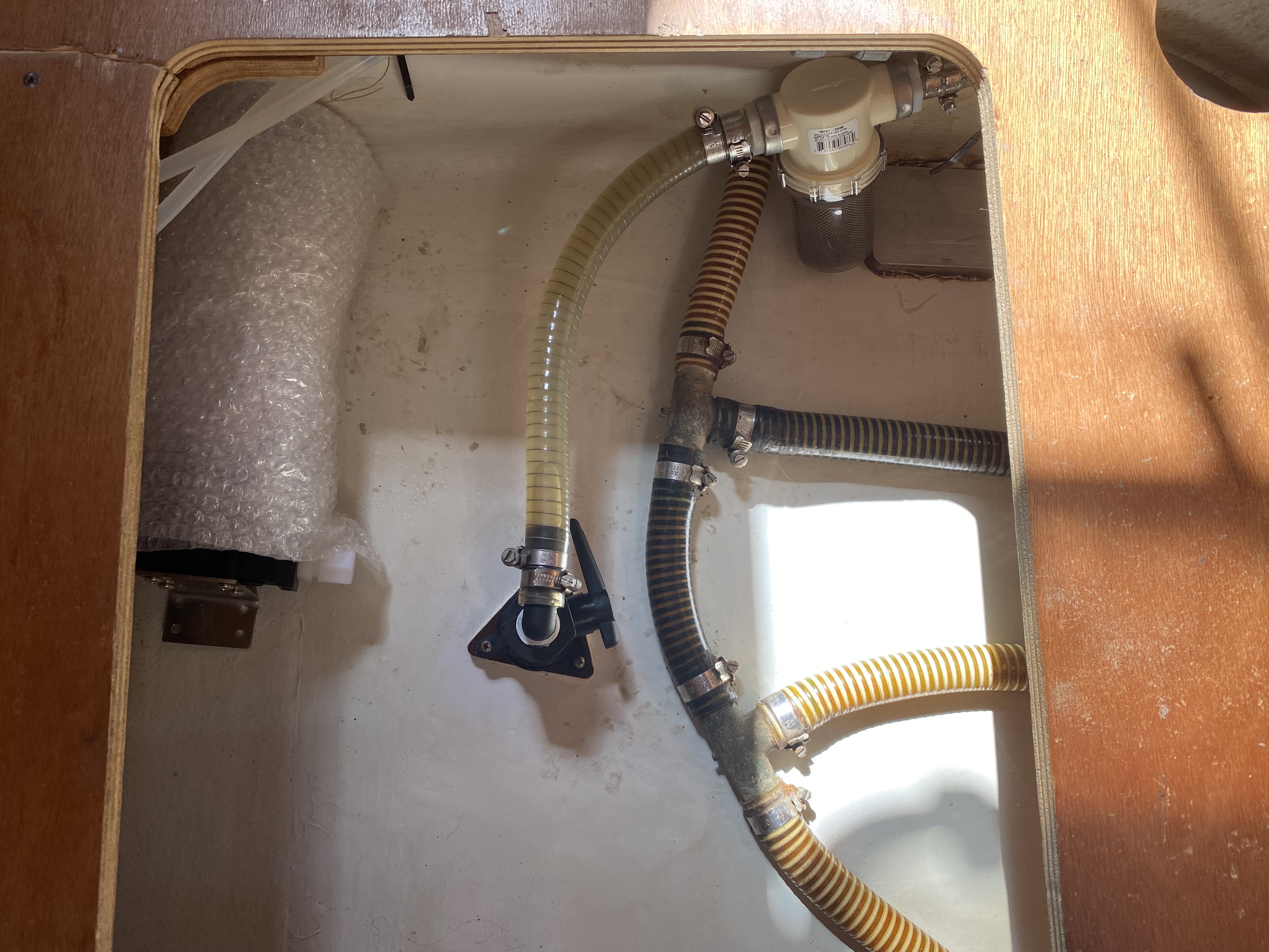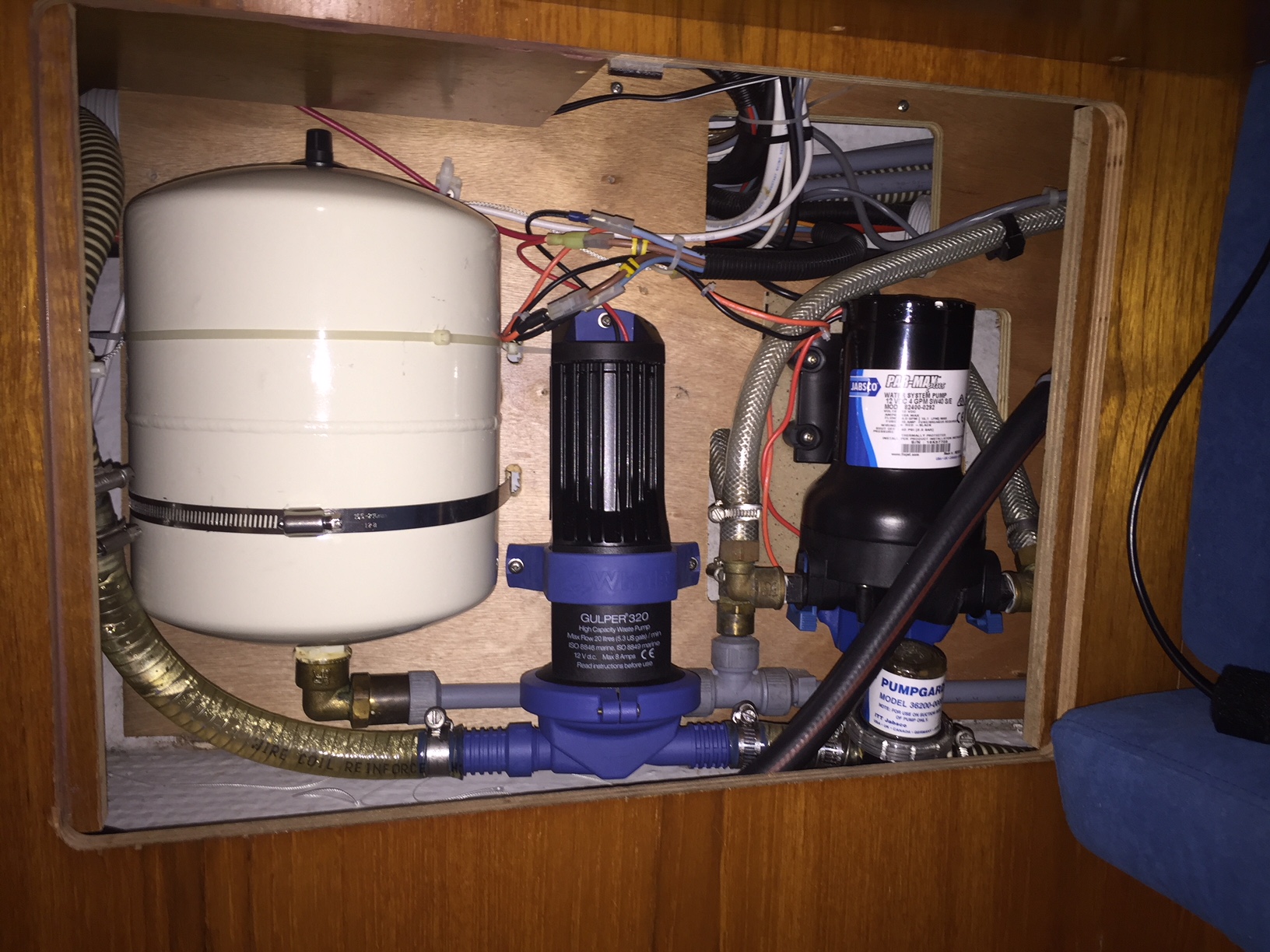 - 3 Bilge pumps: Rule 3500 (emergency), main pump, manual bilge pump