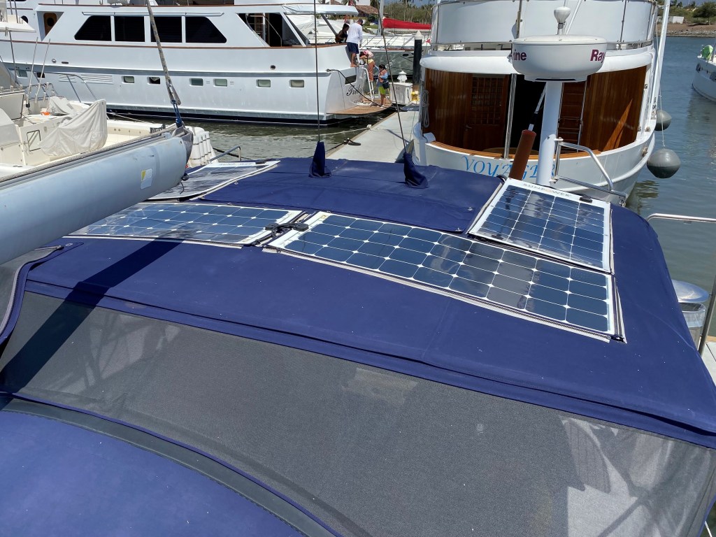 - 445W of Solar, professionally sewn into Bimini